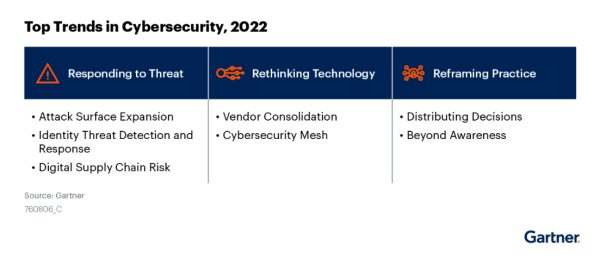 Gartner在2022年发布的《2022年网络安全重点趋势(Top Trends in Cybersecurity 2022)》报告中,把“攻击面扩大”作为重要的一项提出。