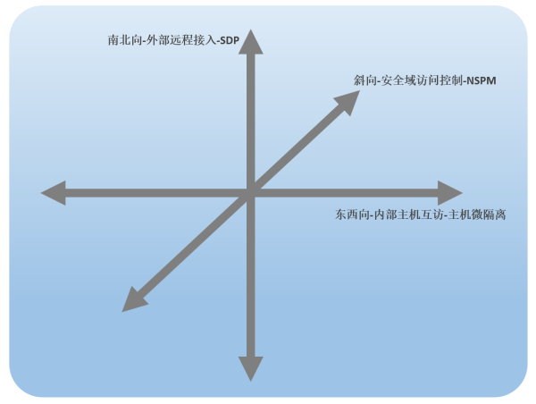 除了讨论特别多的南北向和东西向之外,兼具二者的所谓“斜向”经常被忽略,尤其是当网络规模足够大和安全访问控制策略足够复杂时,这一方向会显得尤为重要。 在跨广域网的多分支机构网络中,同时有众多远程接入用户,包括居家办公员工、供应链及第三方合作伙伴,此时安全域的划分与安全策略规划将会比较复杂。试想,此时两个主机之间的访问可能会跨三层及安全域,也就是说在南北和东西两个方向同时发生,而真正的访问控制落地会在安全设备的访问控制策略上,单纯的南北向或东西向权限控制都不能独立解决问题。