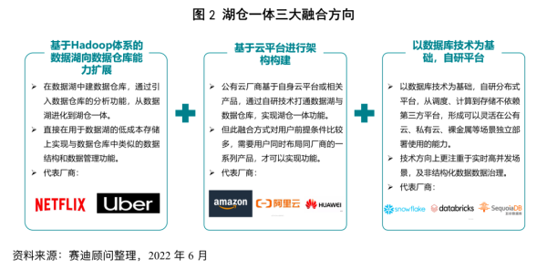 第三个融合方向是以数据库技术为基础,自研分布式平台,从调度、计算到存储不依赖第三方平台,形成可以灵活在公有云、私有云、裸金属等场景独立部署使用的能力。技术方向上更注重于实时高并发场景及非结构化数据数据治理,并逐步向更广泛的分析场景发展,主要厂商以Snowflakes、Databricks、巨杉数据库等为代表。