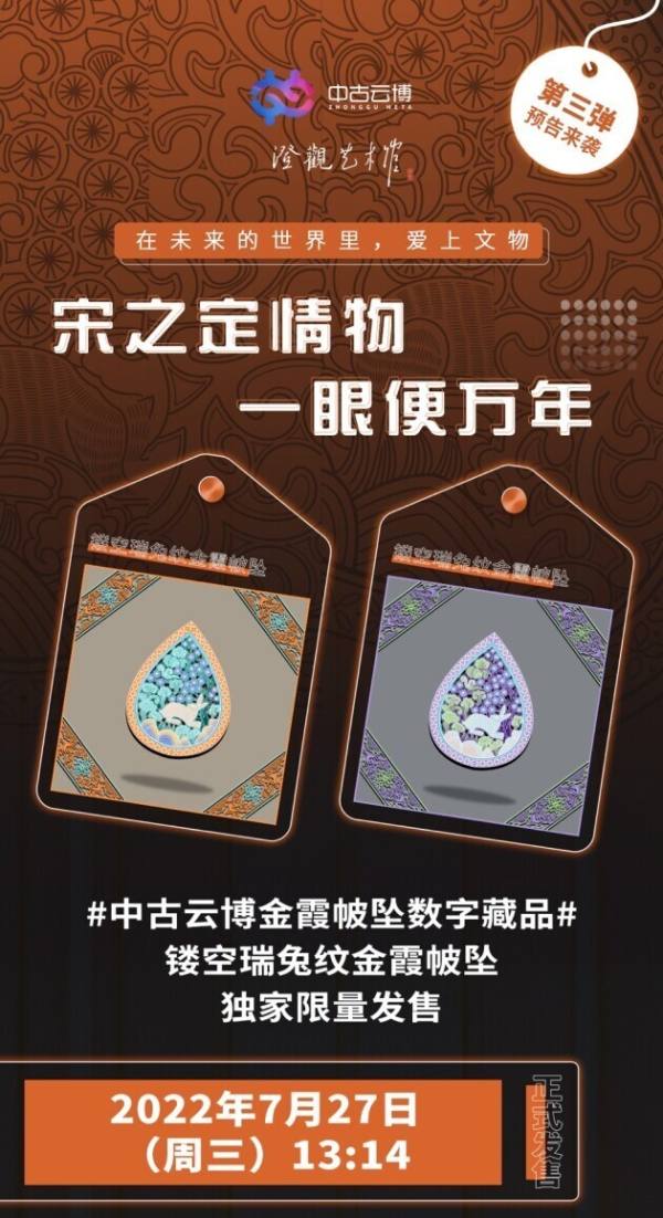 给文物第二次生命,中古云博镂空瑞兔纹金霞帔坠数字藏品即将限量发售