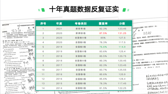 「考试大师」经过近十年高考真题的反复验证,历年来高考真题应用率均在78%-85%之间,考生答题的时候,会的题自己答,不会的题用技巧,拿高分完全不用愁。
