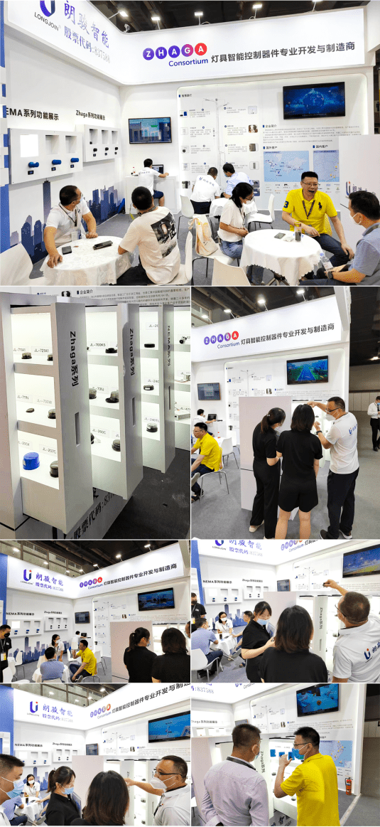 另外,还带来了深受新老客户喜爱的基于NEMA接口的朗骏智能经典光控产品:JL-246CG NEMA接口旋锁式智联光控器(ZigBee主控)、JL-245CZ NEMA接口旋锁式智联光控器(ZigBee子控)、JL-471CZ ZigBee内置式智联光控器、JL-245CN NEMA接口旋锁式智联光控器(NB-IoT版)、JL-205C旋锁式模拟电子式光控开关(亮灯)、JL-412C(R)接线式微型数控光控开关、JL-260D NEMA接口旋锁式光控器插座(7P旗舰超薄防水可旋转版)、JL-240XHA NEMA接口固定旋锁式光控器插座(NEMA 7P/5P弧形触片版)、JL-230F 旋锁式光控开关插座(高防水型)。以及Zhaga接口的三款明星光控产品: JL-711A2 Zhaga Book-18 锁扣式控制器、JL-700 Zhaga Book-18 锁扣式插座(预装防水版本)、JL-700K Zhaga Book-18 锁扣式插座。