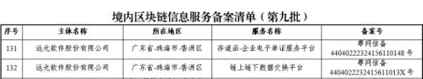 近日,国家互联网信息办公室(简称:国家网信办)发布第九批境内区块链信息服务名称及备案编号,其中,远光软件自主研发的存道函-企业电子单证服务平台与链上链下数据交换平台两款产品获得备案编号。