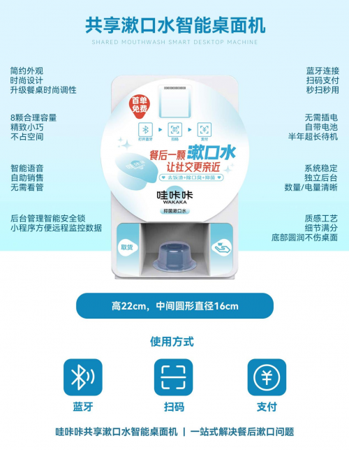 守护国民口腔健康,微众享推出哇咔咔共享漱口水智能桌面机
