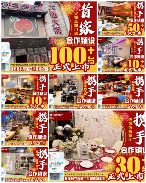 八月,微众享智能科技正式推出哇咔咔共享漱口水智能桌面机,广州各大餐饮品牌纷纷合作铺设,第一批就有30+餐饮品牌门店开启铺设,铺设哇咔咔共享漱口水桌面机过千台。