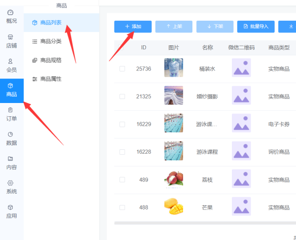 步骤四,商品分类,顾名思义就是我们商品的类别,比如我们是水果、蔬菜、服装、文具、玩具、肉类等,根据我们实际的分类进行添加,依次添加就可以的。