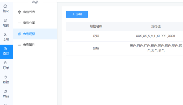 步骤三,添加商品规格,点击添加,编辑规格名称,然后填写具体的规格数值,比如规格是尺寸,规格数值就是XS、S、M、L、XL,或者规格是颜色,那么数值就是红色、黄色、黑色等,都可以依次继续添加不同规格,我们有多少就可以填写多少的。