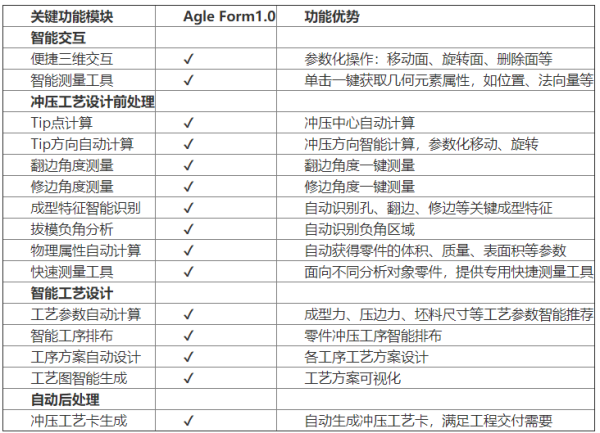 大捷智能一直致力于从工程技术进步的需求出发,研发与专业场景相切合的人工智能算法引擎,引领行业的技术进步。 Agle Form V1.0作为大捷智能设计引擎与行业结合的首款软件产品,开辟了一条AI技术在工业研发领域应用切实可行的路径。该冲压工艺智能设计系统适合于汽车整车及零部件、家电等行业,目前已经在行业龙头企业推广应用。