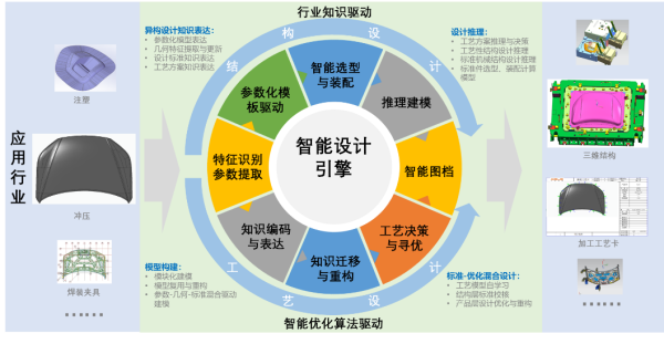 大捷智能自主研发特征智能识别与提取、工艺知识编码与多重表达、工艺成型机理、工艺智能决策与推理、工艺方案可视化等核心技术 ,打造了面向制造业的智能设计引擎平台。以技术密集度极高的冲压行业为切入点,率先将智能设计引擎平台与冲压行业专业知识相结合,推出业内首款冲压工艺智能设计软件系统——Agle Form V1.0。该软件实现了智能设计引擎在具体行业的应用落地,填补了行业空白,让工艺设计的智能化成为现实。