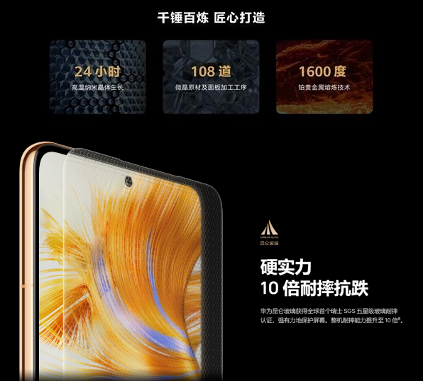 除了华为自有的超变光XMAGE影像系统,HarmonyOS 3.0系统,发布会最大的亮点是屏幕搭载昆仑玻璃,抗跌落能力提升昆仑破晓、昆仑霞光 均有2.5D、3D版本应用昆仑玻璃,具有超可靠抗跌耐摔的特性。