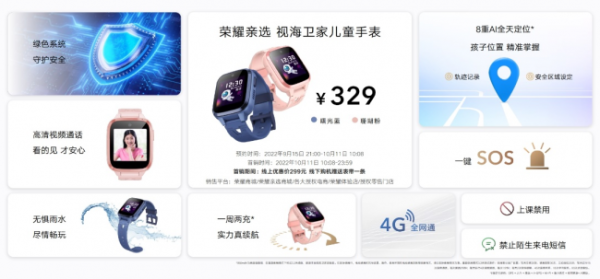 儿童手表9月15日21:00开启预约,10月11日10:08正式开售,首销期间线上优惠价299元,线下购机赠表带一条,宝爸宝妈赶紧给刚开学的孩子准备上吧!