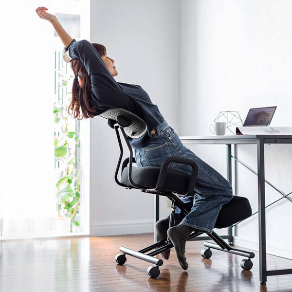 这款椅子造型上明显和普通办公椅不同,山业导入S型曲线概念,矫姿椅可以帮助端正坐姿,腿部以跪坐姿势支撑在海绵垫上,保持身体曲线,非固定靠背多角度贴合身体,让腰部和背部舒缓放松。