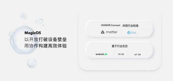 在智能互联的体验背后,是荣耀秉持的开放生态观——通过荣耀互联的货架化协议,实现底层设备和上层应用的流畅互联,同时MagicOS对Matter、OLA等主流协议兼容。这是荣耀一直信守的理念——把复杂留给自己,把简单便捷留给用户和合作伙伴。