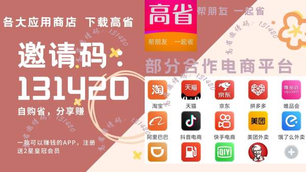 3 自己用省钱,分享还能赚钱,省心放心,发发链接,推荐朋友领券购买,就有更多的推广佣金。 (很多人误以为高省是卖东西的,其实不是,高省只是提供各大平台优惠券综合导购平台,没有高省你一样要网购,淘宝同一家店同一件商品,直接购买就是原价)