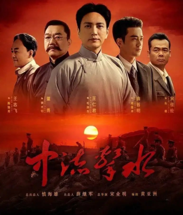 《中流击水》:1919年,五四运动爆发,《新青年》主编陈独秀因抗 议北洋军阀政府镇压学生而被捕入狱。远在长沙的毛 泽 东、何叔衡等人发起营救运动,经李大钊秘密周旋转移到上海的陈独秀,终于认识到唯有通过革命推翻反动统治才能救中国,遂在上海成立了共产主义小组,着手筹备一大会议的召开。由于法租界巡捕房的暗中侦查与破坏,一大会议被迫临时转移至嘉兴南湖的一艘游船上继续举行,毛 泽 东、董必武、陈潭秋等一大代表通过了《中国共 产 党党纲》,选举产生了中央领导机构,庄严宣告了中国共 产 党的诞生。