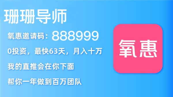 氧惠APP,2022全新模式,0投资,佣金更高、模式更好,终端用户不流失。【氧惠】是一个自用省钱佣金高,分享推广赚钱多的平台,百度有几百万篇报道,也期待你的加入。珊珊导师氧惠邀请码888999,注册送V9等级,送万元推广大礼包,教你如何1年做到百万团队。