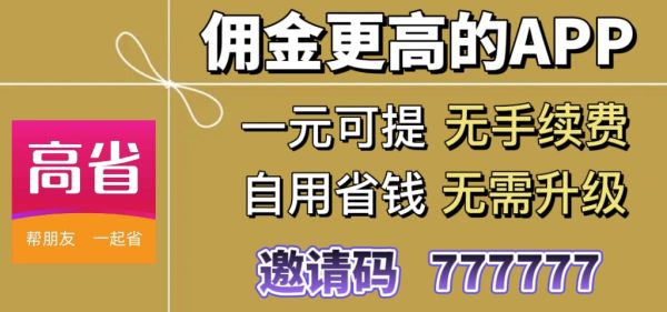 高省APP,是2022年推出的平台,0投资,0风险、高省APP佣金更高,模式更好,终端用户不流失。【高省】是一个自用省钱佣金高,分享推广赚钱多的平台,百度有几百万篇报道,也期待你的加入。珊珊导师,高省邀请码777777,注册送2皇冠会员,送万元推广大礼包,教你如何1年做到百万团队。