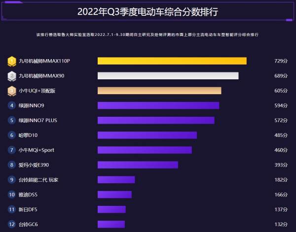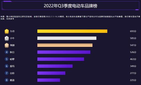 鲁大师2022年Q3季度电动车报告:九号机械师霸榜,绿源发力智能化