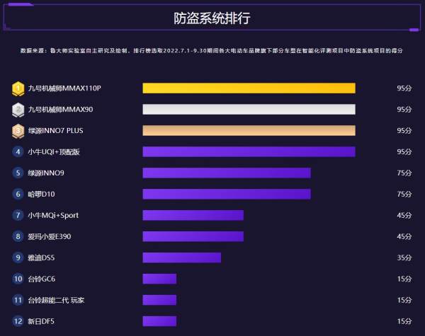 防盗系统领域从来不缺智能化,我们根据电动车智能状态当中的上锁、解锁、定位和**状态、防盗设计等来测评车辆。