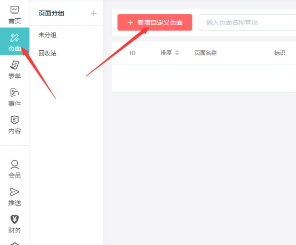 2.在左边页面里新建一个自定义页面,内容根据自己需求填写了保存即可,这个不是很重要的项目