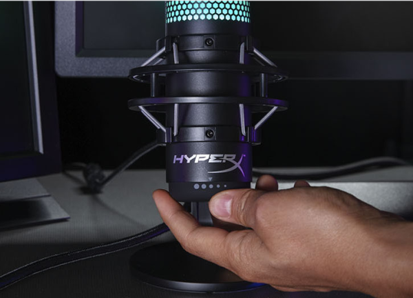 HyperX声浪加强版专业麦克风的灯效不仅拥有出众的颜值,还兼具实用的便利性,比如在使用过程遇到突发状况咳嗽或者需要与他人讲悄悄话需要暂时静音,只需轻拍麦克风顶部,即可通过静音传感器实现快捷静音,麦克风的工作状态则可以通过LED指示灯直观显示,灯亮的时候代表静音关闭,灯灭的时候代表静音开启。