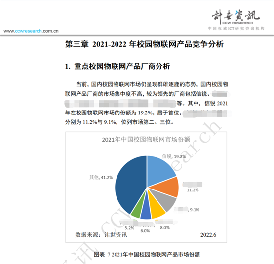 信锐技术2021-2022年校园物联网市场占有率第一