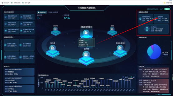信锐IS春蚕校园物联网解决方案在实际使用中也带来了全新体验。比如在终端使用方面,支持通过智能触控面板对教育教学设备进行一键开关、情景化等控制,让学生充分体验物联技术新应用,寓教于乐,寓学于趣。而在管理运维方面,则通过春蚕校园综合大屏(图三),实时展示校园的能耗及相关系统的运行状态,并可以根据具体情况远端联动告警和人工干预,极大提高了运维效率。