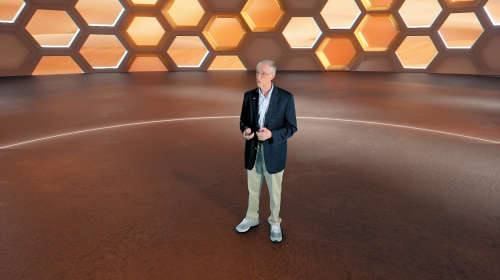 (图:2006年诺贝尔物理学奖得主、韦布空间望远镜高级科学家约翰·马瑟演讲)