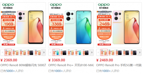 在双十一活动中,OPPO Reno8系列带来至高330元优惠,并可享受24期免息、10元店铺会员券和礼品赠送。标准版OPPO Reno8实际到手1969元起,OPPO Reno8 Pro实际到手2469元起,OPPO Reno8 Pro+实际到手3369元起。