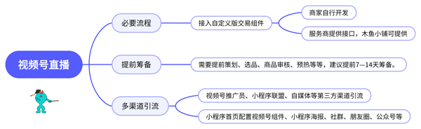 *准备好一个功能齐全的小程序商城并完成店铺搭建、商品上架等工作,同时根据营销需求接入和开通相应功能,如视频号直播,需要提前3-5个工作日完成自定义版交易组件接入流程。