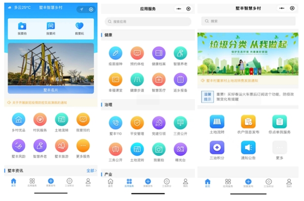 以游客服务为例,小程序集成了旅游气象、游线地图、美食民宿、墅丰特产、节事活动等信息,能够为游客提供便利的在线服务,提升旅游体验感,促进当地文旅产业发展。针对当地村民,小程序上整合了多个部门的在线应用服务,小到公共设施破损、脏乱环境上报,大到看病报销、土地流转等,村民足不出村就能办理各类行政事项、享受便捷的生活服务。