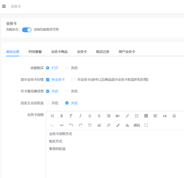 步骤三,应用-会员-会员卡,做健身房标配的就是会员卡和会员储值了,通过会员管理让客户享受到优惠福利,我们商家也可以及时回笼资金,会员卡可以设置月卡、年卡,会员储值还可以设置充值赠送金额,吸引客户在线充值。
