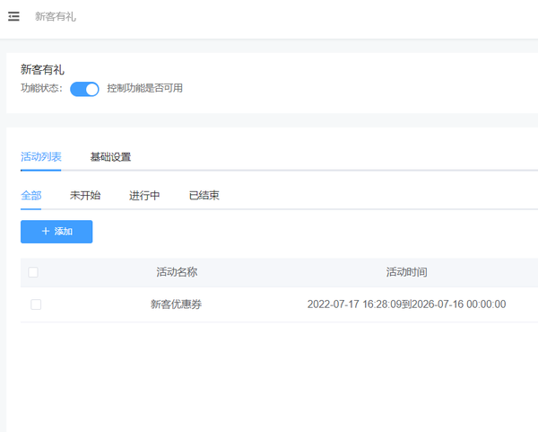 步骤二,进入后台应用-营销-新客有礼,我们可以通过新客有礼活动,让我们的用户进店扫码领取进店大礼包,还可以搭配会员卡扫码注册成为会员,享受更多的会员优惠和会员权益,那么我们做新客有礼活动需要先添加优惠券,优惠券添加完成就可以来设置新客有礼,设置完成保存即可。