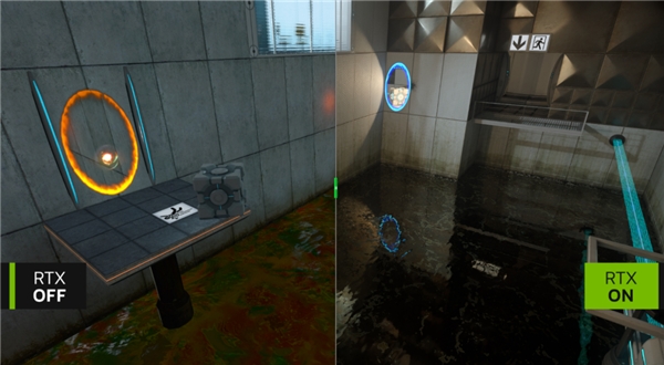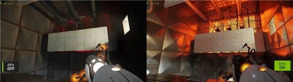在《传送门》RTX版 中,游戏采用了全景光线追踪、全局光照间接照明和体积光线。不仅可以使游戏中的光线如现实般反应场景中的图形和材质特性,还可以使房间变亮变暗,让光线在烟雾中散射,使玩家更具有沉浸感。