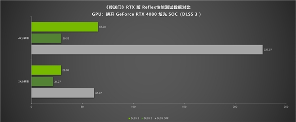 当开启DLSS 2和DLSS 3后,该情况有明显改变。在4K分辨率下,开启DLSS 后Reflex延迟最低达到29ms;2K分辨率下Reflex延迟最低达到21ms。这时玩家的操作变得流畅细腻,降低系统延迟后的射击精准度也得到提升,能帮助玩家更好地通关。
