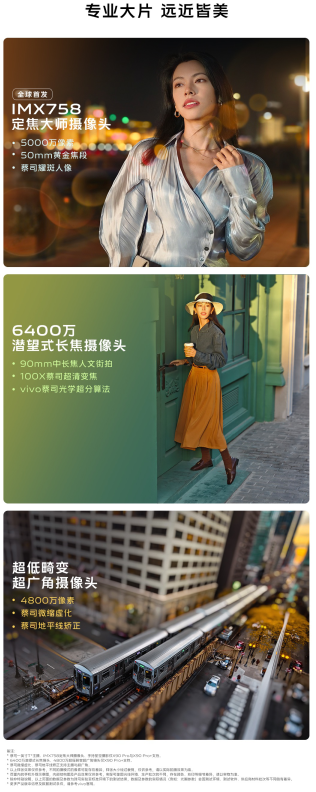 器件之外,vivo X90系列还推出vivo超感人像系统,以人像理解、人像美化、人像氛围三大模块为人像拍摄提供专门优化方案,不仅能够高精度识别人脸及肢体关键点检测,带来精细化的人像重塑和动态人像抓拍能力,还以全新升级的微米级焕肤塑颜技术和人像氛围融合技术带来观感更自然、场景更协调的人像表现力。