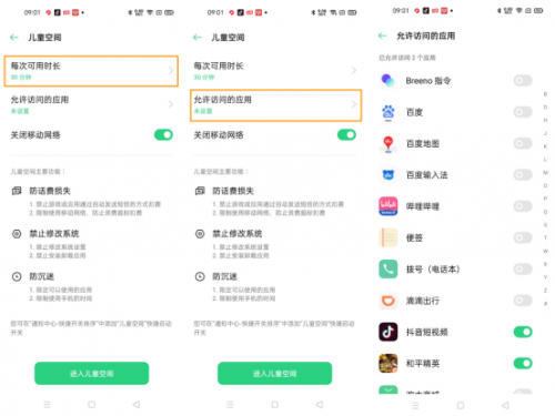 为了进一步加强管控措施,OPPO游戏还联动OPPO手机的儿童空间,辅助家长监督未成年人适当使用手机。开启该功能后,家长可以设置孩子可使用的应用以及每次使用时长,同时还可以禁止游戏或应用通过自动发送短信的方式扣费,多维度守护家长钱包。值得一说的是,当达到家长设置的使用时长或中途退出后,想要继续使用手机需输入机主的指纹或者密码解锁。家长只需打开手机设置--隐私--儿童空间--设置相关软件及使用时间--进入儿童空间即可完成设置。
