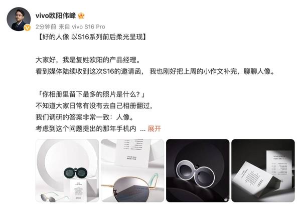 12月20日,vivo官方微博发布了vivo十年人像光影探索史的海报长图,回顾了vivo在十年人像光影探索史中的技术创新和经典产品。随后,vivo官方微博又发布了vivo S16系列人像功能海报,将vivo S16系列的前后置影像实力进一步展现。