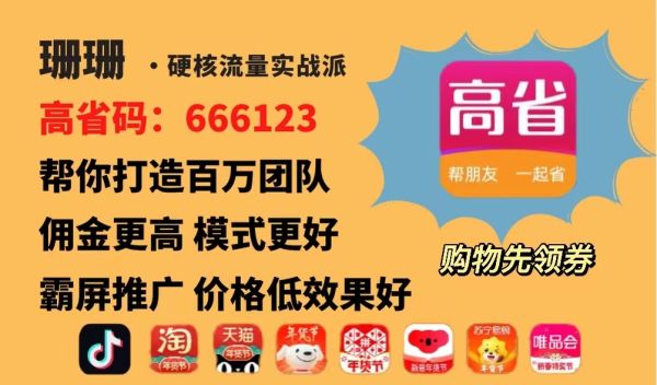 高省APP,是2022年推出的平台,0投资,0风险、高省APP佣金更高,模式更好,终端用户不流失。【高省】是一个自用省钱佣金高,分享推广赚钱多的平台,百度有几百万篇报道,也期待你的加入。珊珊导师,高省邀请码666123,注册送2皇冠会员,送万元推广大礼包,教你如何1年做到百万团队。