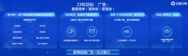 基于以上经验总结,巨量引擎正式提出了教育行业线索广告一站式解决方案,将在2023年助力更多教育从业者实现线索经营新突破: