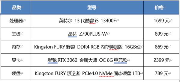 英特尔13代酷睿处理器中性价比最高的当然就是i5-13400F,10核心16线程,睿频至高4.6GHz,拥有20MB智能缓存,最重要的是其价格只有1699元。主板依然可以选择Z790芯片组,昂达的Z790PLUS-W的价格只有区区899元,10+2相强化供电,支持双通道DDR4-3600,板载双PCIe 4.0 NVMe M.2插槽和PCIe x16插槽,为未来预留了一定的升级空间。