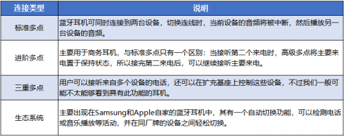 值得注意的是,具有多点连接功能的蓝牙耳机必须同时支持A2DP和HFP/HSP连接,以分别进行音频传输和通话。