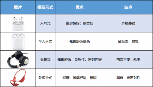 以真无线蓝牙耳机为例,目前真无线蓝牙耳机有半入耳式和耳塞式两种常见的类型,当然还包括头戴式、骨传导式等。