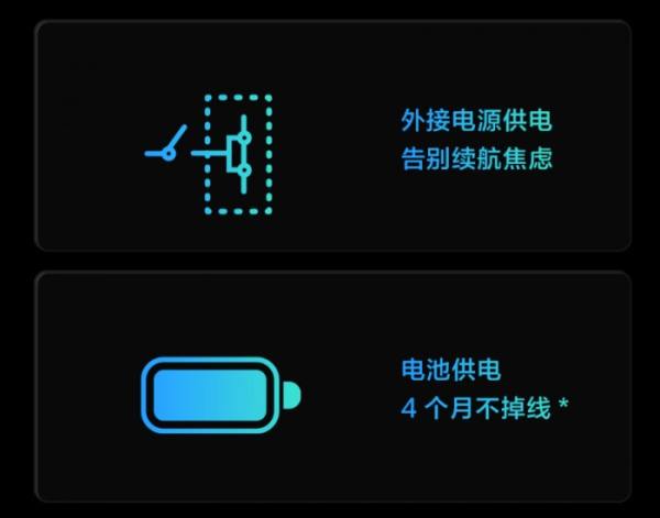Aqara 智能可视门铃 G4 支持电池供电或者外接电源供电,电池供电可以达到 4 个月续航