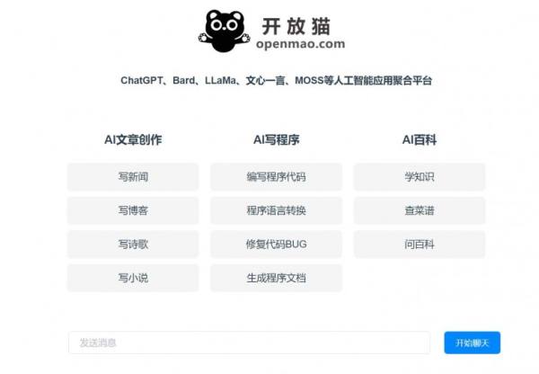 记者发现,最近在朋友圈疯传一个叫开放猫(网址www.openmao.com)的AI应用聚合平台,聚合了ChatGPT、Bard、LLaMa、文心一言、MOSS等模型应用。输入聊天内容随时聊天,并且可以按照需要直接创作博客/新闻/文章、写代码、修复代码bug、生成Excel、自动回复邮件等,强大的语义理解能力吸引大量用户。据说,目前开放猫已经完成了第一阶段的升级。