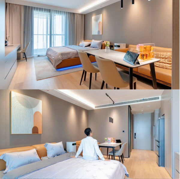 该实验基地项目共三层,涵盖展示区域、实验室区域和公共区域。在由顾家家居提供家具的展示区域中,顾家家居选择智能沙发、智能单椅、智能床等不同的产品,通过不同空间的生活化场景,来展示智能家居未来。如在客餐厅展示区,顾家家居通过真皮材质的空间产品与电动功能的结合,以及空间整体高级灰色调的定制套系产品,打造出一个意式优雅风的空间,空间中的功能类沙发、单椅、智能床等在接入鸿蒙生态之后,也将实现全屋多设备联动场景,带来智能化交互体验。比如用户需要一个深睡环境,只要在手机或语音设置睡眠模式,空间内灯光、床垫、窗帘将自动联动营造睡前氛围,一键进入助眠状态,待进入睡眠状态后,还能持续感知睡眠状态及身体状况,以实时调整睡眠环境。