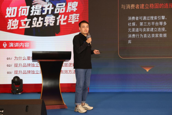面对跨境市场环境依旧复杂多变的形式与出海的不确定性,跨境企业、卖家如何通过独立站抓住确定性呢?对此,领动领售LeadongShop商务总监Neil以品牌独立站为切入点,就《如何提升品牌独立站转化率》,为出席活动的嘉宾和各卖家分享了一些思考与实践。