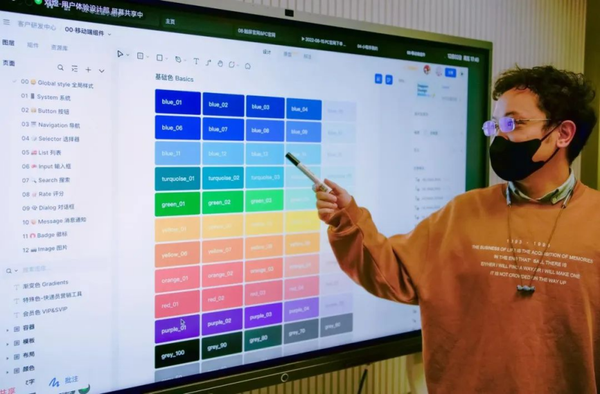图:德邦快递 UI 设计师刘煜在介绍 MasterGo 颜色选集功能