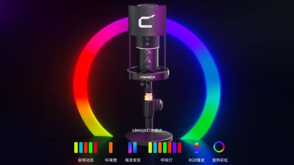 同时,为满足用户的多样化创作需求,科唛STA-U2还配备了触控静音、实时监听、输出增益调节等功能,其中监听和增益调节旋钮为独立设计,便于用户能更灵活地掌控录制状态。值得一提的是,在外观方面,科唛STA-U2特别设有6种RGB炫彩动态灯效,兼具实用性和美观性,为直播、播客、音乐创作提供了沉浸式的收音体验。