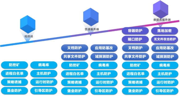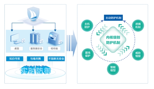 系统集内核级别防护机制、主机防护、基线防护、威胁情报、诱捕机制、智能学习模型等创新技术为一体,实时监控各类进程对数据文件的读写操作,快速识别、阻断非法入侵行为,旨在通过严密的防御机制,主动抵御各类已知、未知勒索病毒的侵袭。
